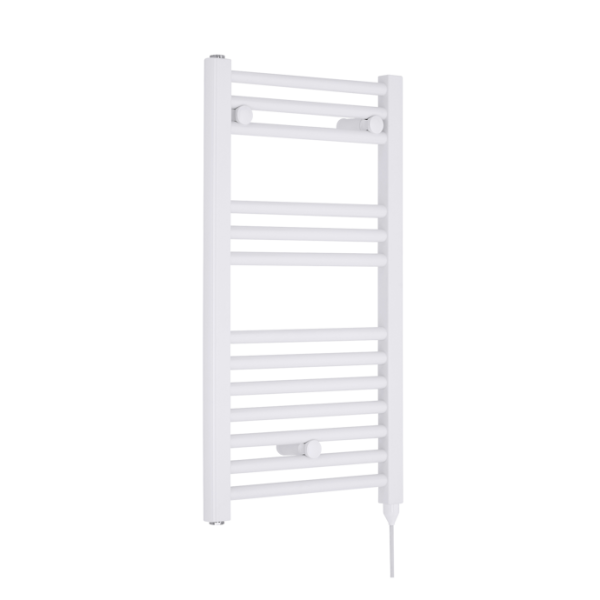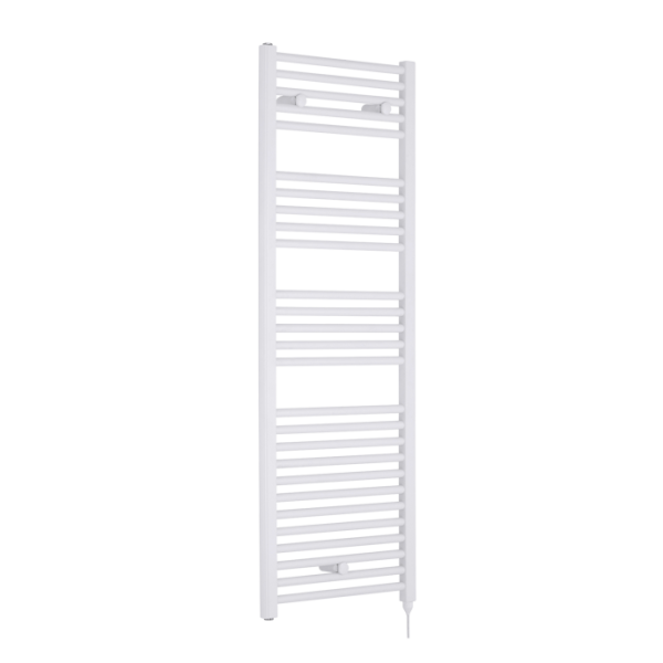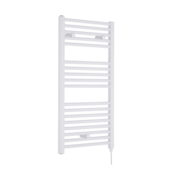 Electric Heated Gloss White Towel Rail With Round Bars, 18 Rails,