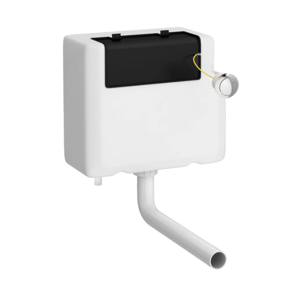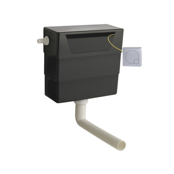 Dual Flush Concealed WC Cistern, Side Inlet, with Modern Black Flush Button