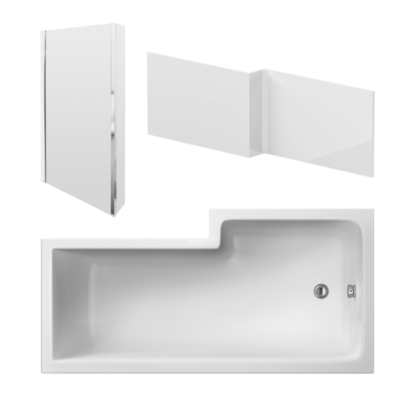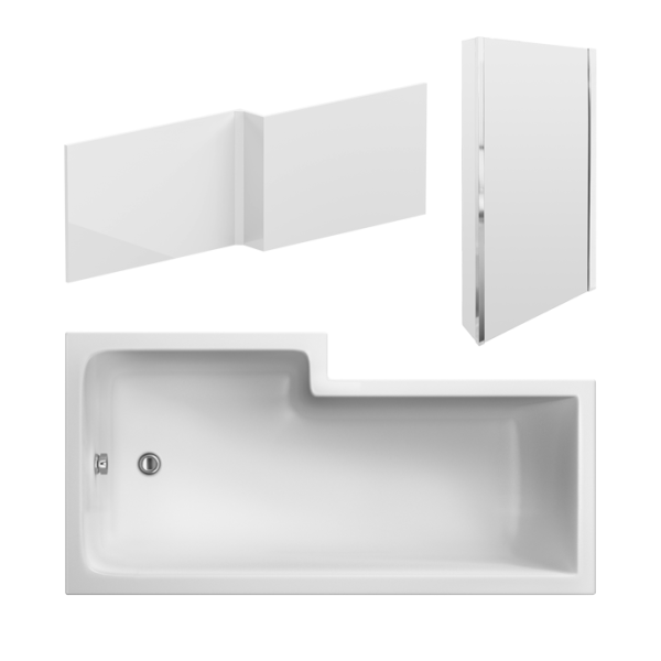 Square Shower Bath with Fixed Screen & Panel
