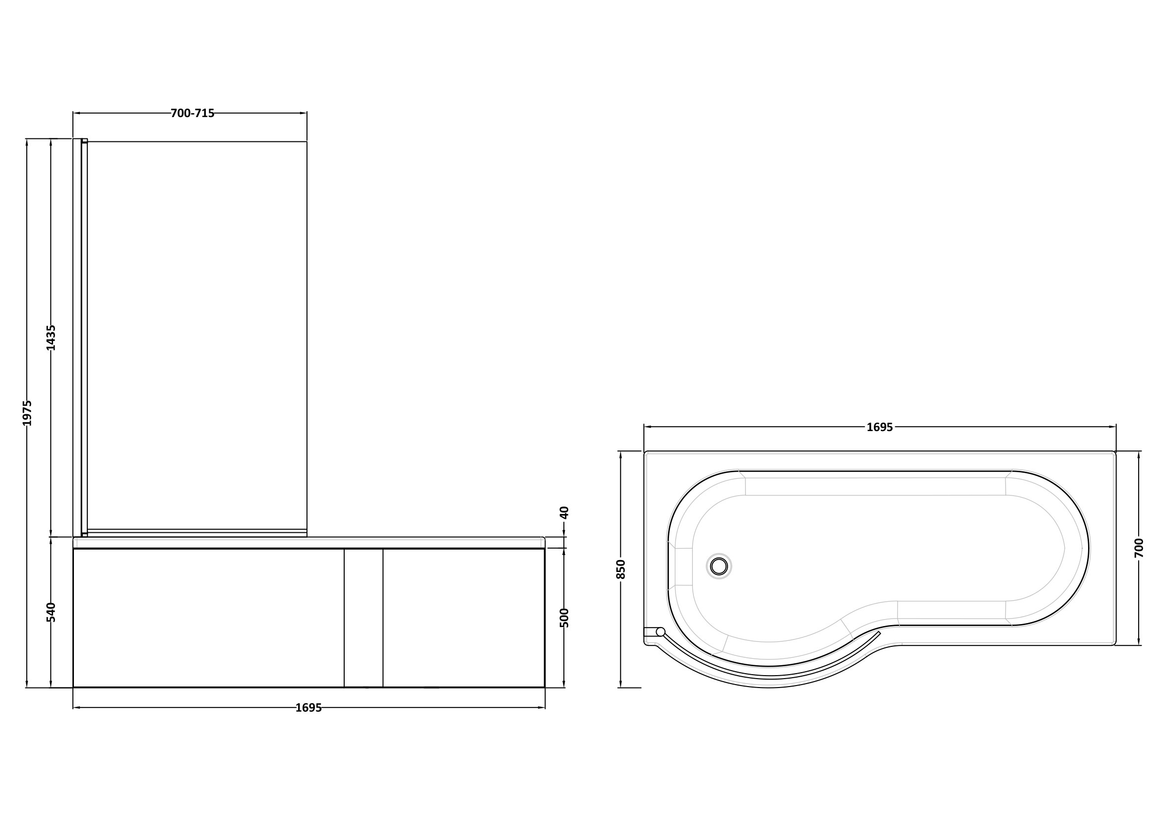 Includes 1700mm left hand shower bath, Curved bath screen & Sanitary Grade Acrylic side panel.End panel not included.Designed and built to the highest quality. Sanitary Grade Acrylic.Un-drilled.Supplied with leg set