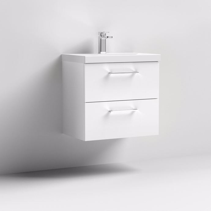 600mm Wall Hung 2 Drawer Vanity & Basin 2