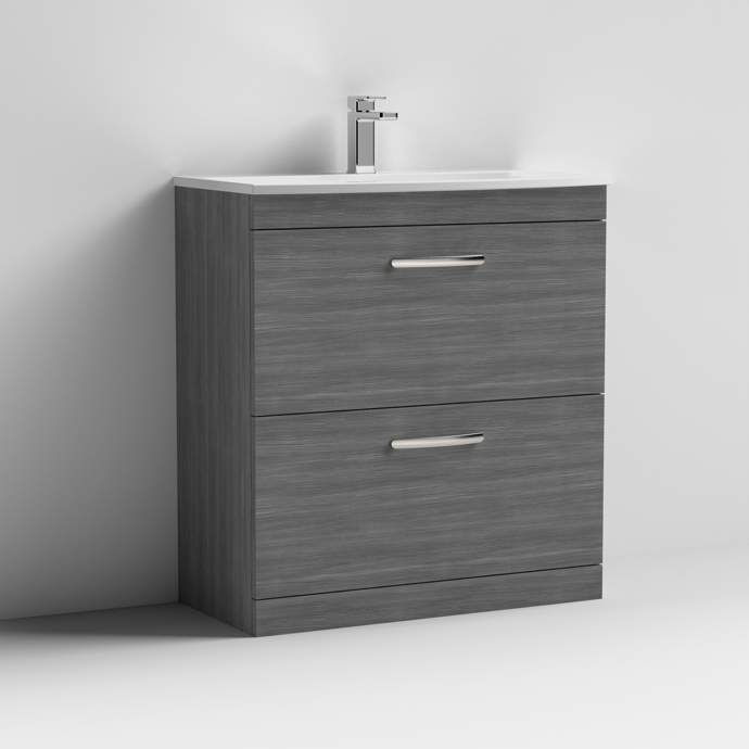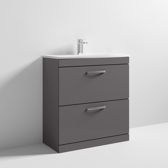 800mm Gloss White Floor Standing 2 Drawer Vanity Unit With Thin-Edge 1 Tap Hole Basin