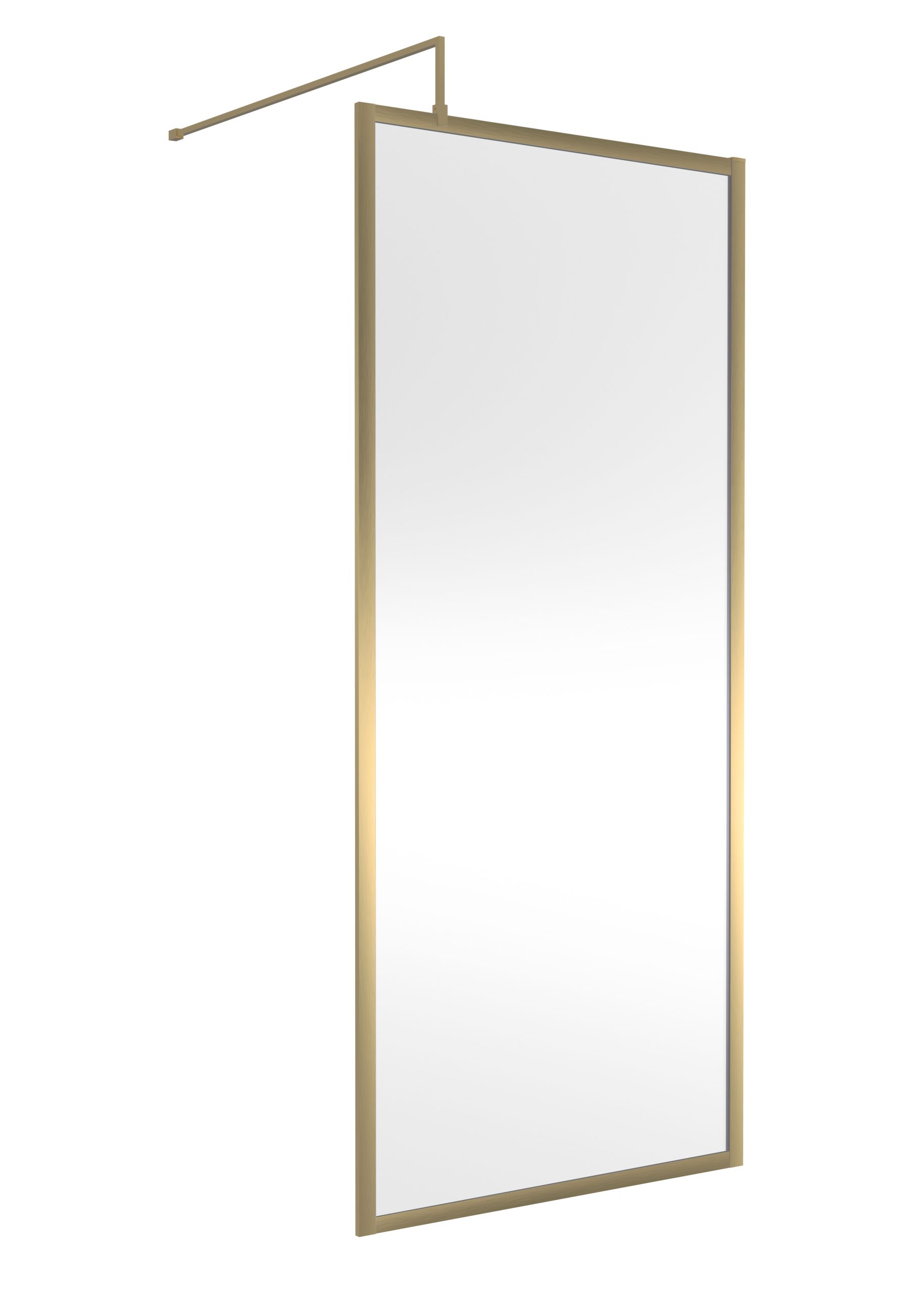 On trend brushed brass full outer frame design. 8mm toughened safety glass. Single-sided ‘Shower Shield’ coated glass. Shower tray sold separately. Includes support bar and profile kit.